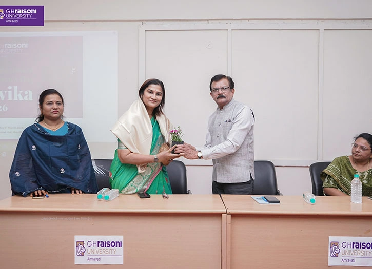 G H Raisoni University, Amravati celebrated International Women’s Day – “Jivika 2026” on 9 March 2026 with over 120 women participants. Chief Guest Mrs. Meenakshi Rajesh Sikchi spoke on financial literacy and independence for women. The event was organized by Dr. Bhavana Karmore, Dr. Swati Ambadkar, and Prof. Sapana Nandanwar, promoting women’s empowerment.
